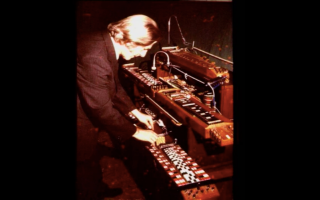 Ernő Király performing on zitherphone. Archive photograph form the film "Promenade" by Igor and Ivan Buharov, 2006-2009